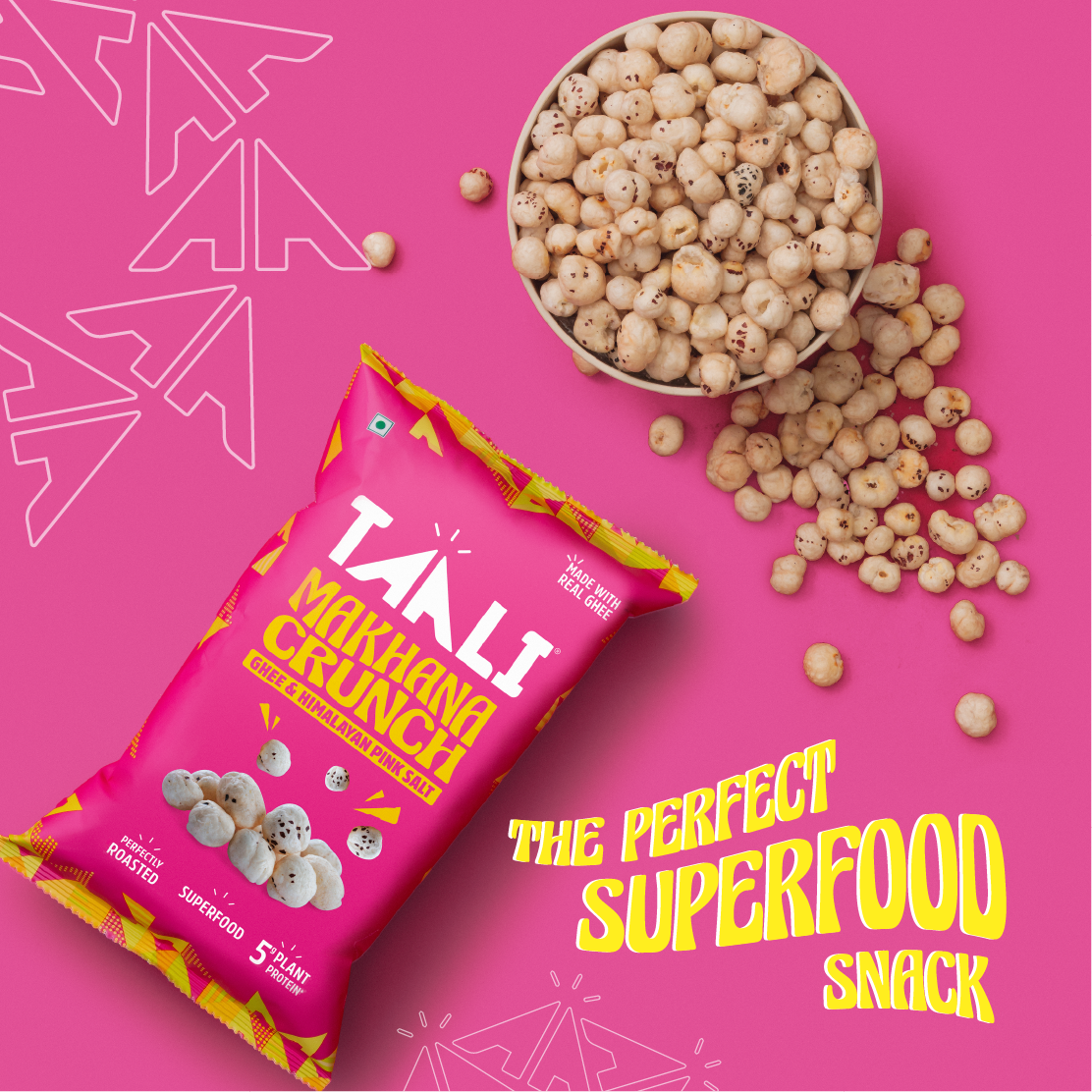 Craving something namkeen and tasty? Try this delicious Taali snack for the perfect savory fix. Rooted in tradition and roasted in pure desi ghee-not fried-this Phool makhana flavour celebrates India’s age-old snacking wisdom. Sprinkled with Himalayan pink salt, rich in natural minerals, it delivers a wholesome, rich taste that’s both nourishing and indulgent. It’s the kind of flavour your dadi would love-with a crunch your taste buds can’t resist.